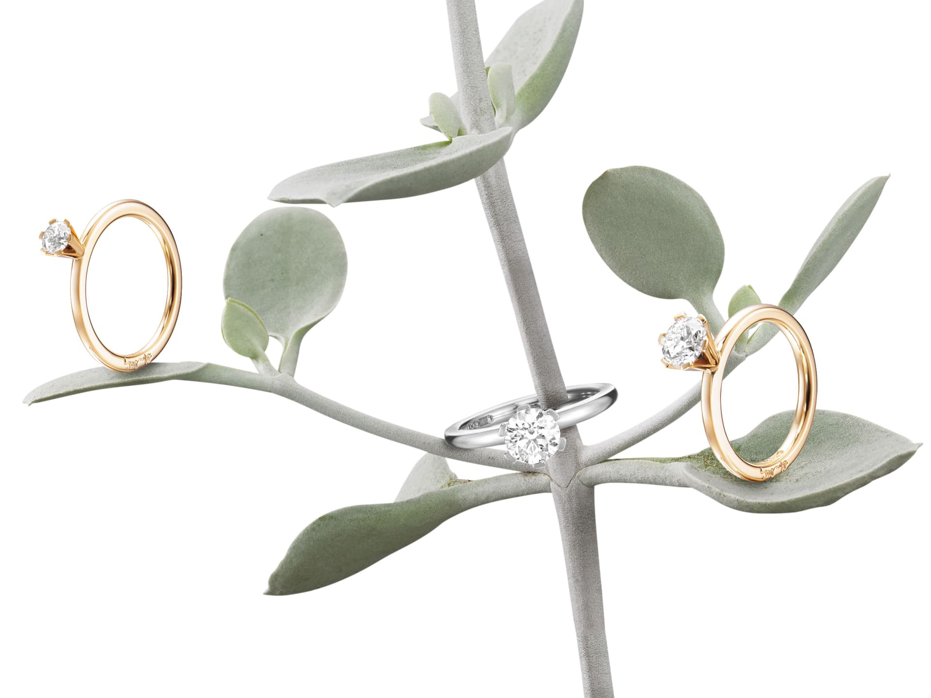 When you buy a solitaire diamond ring of 0.50 Carat or more from us at Efva Attling, a GIA certificate (Gemological Institute of America) is included. GIA is the market's largest certification institute in certified diamonds, which individually assesses each stone according to the four Cs; Carat, Color, Clarity and Cut.