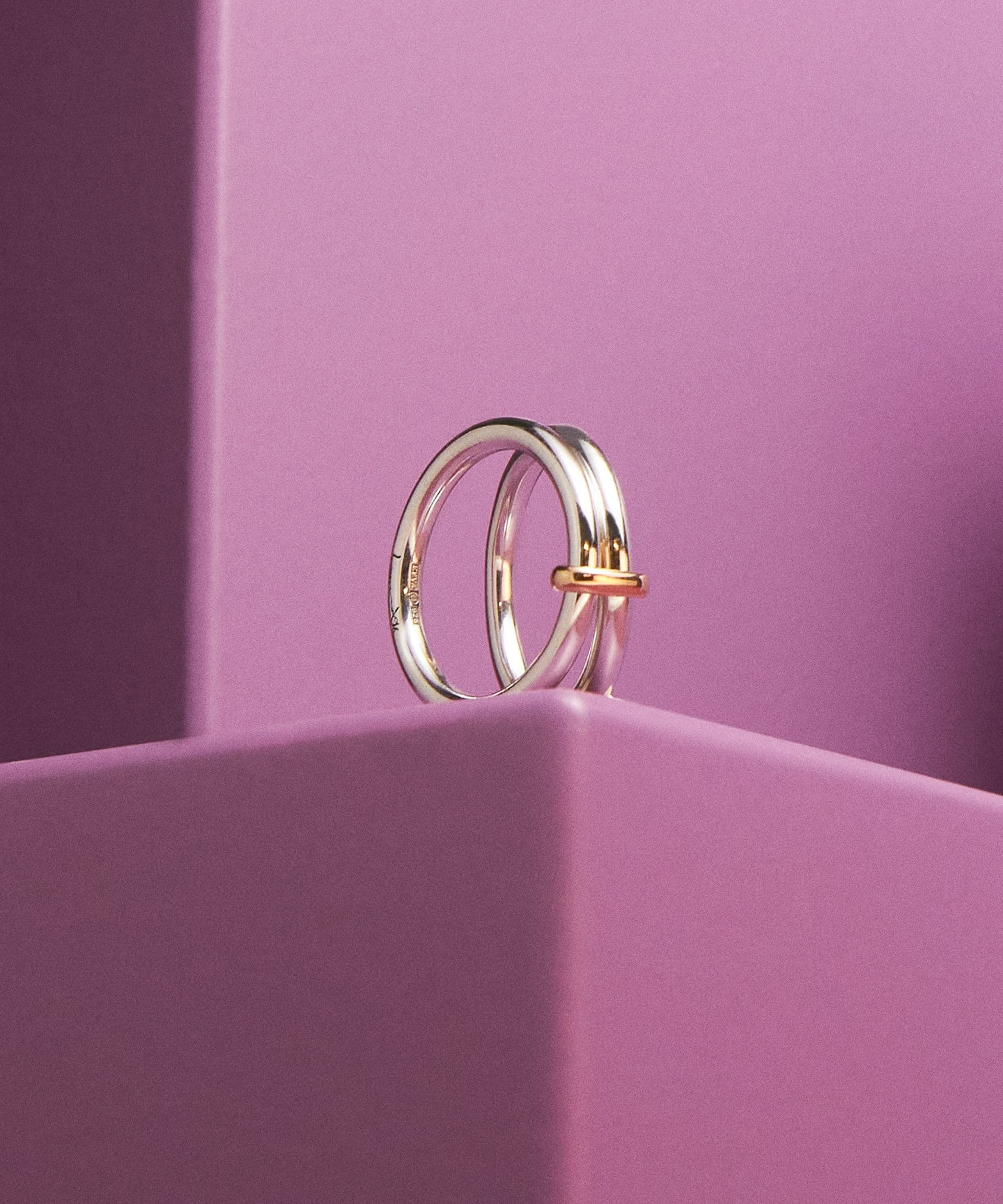 ”Kahta hopeasormusta pitää yhdessä kolmas, pienempi sormus. 18 k kultaa. Symboli suhteelle, joka ei kestänyt, mutta joka toi jotain kaunista – lapset – kultaa.”