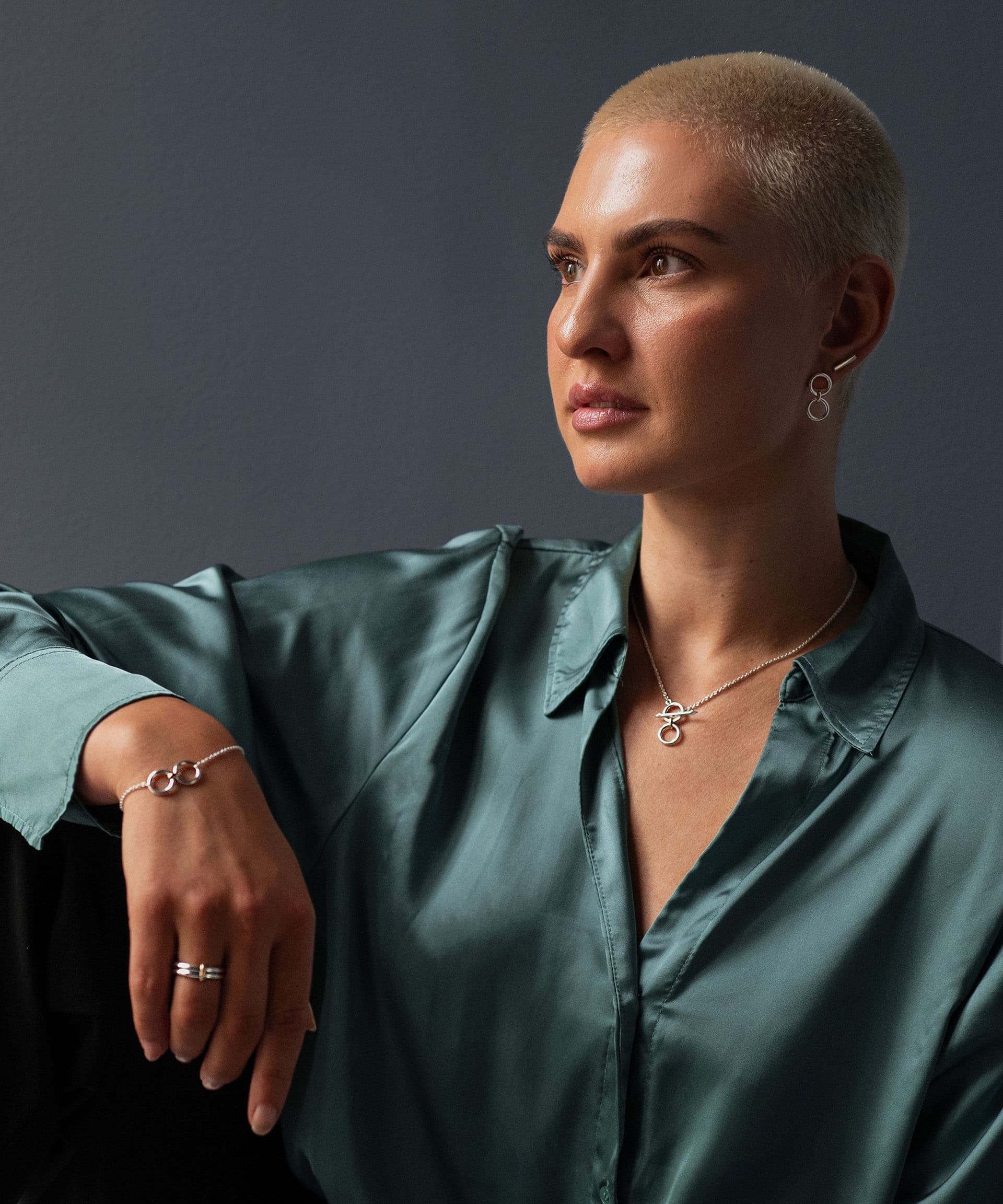 Mallisto sisältää kaulakoruja, rannekoruja, korvakoruja ja kaksi erilaista sormusta. Valitse kulmikkaampi sormus tai kapeampi versio, niin löydät itsellesi parhaiten sopivan. Jos haluat kaulakoruun lisää särmää, voit valita mallin, jonka etuosassa on hopeanuoli.