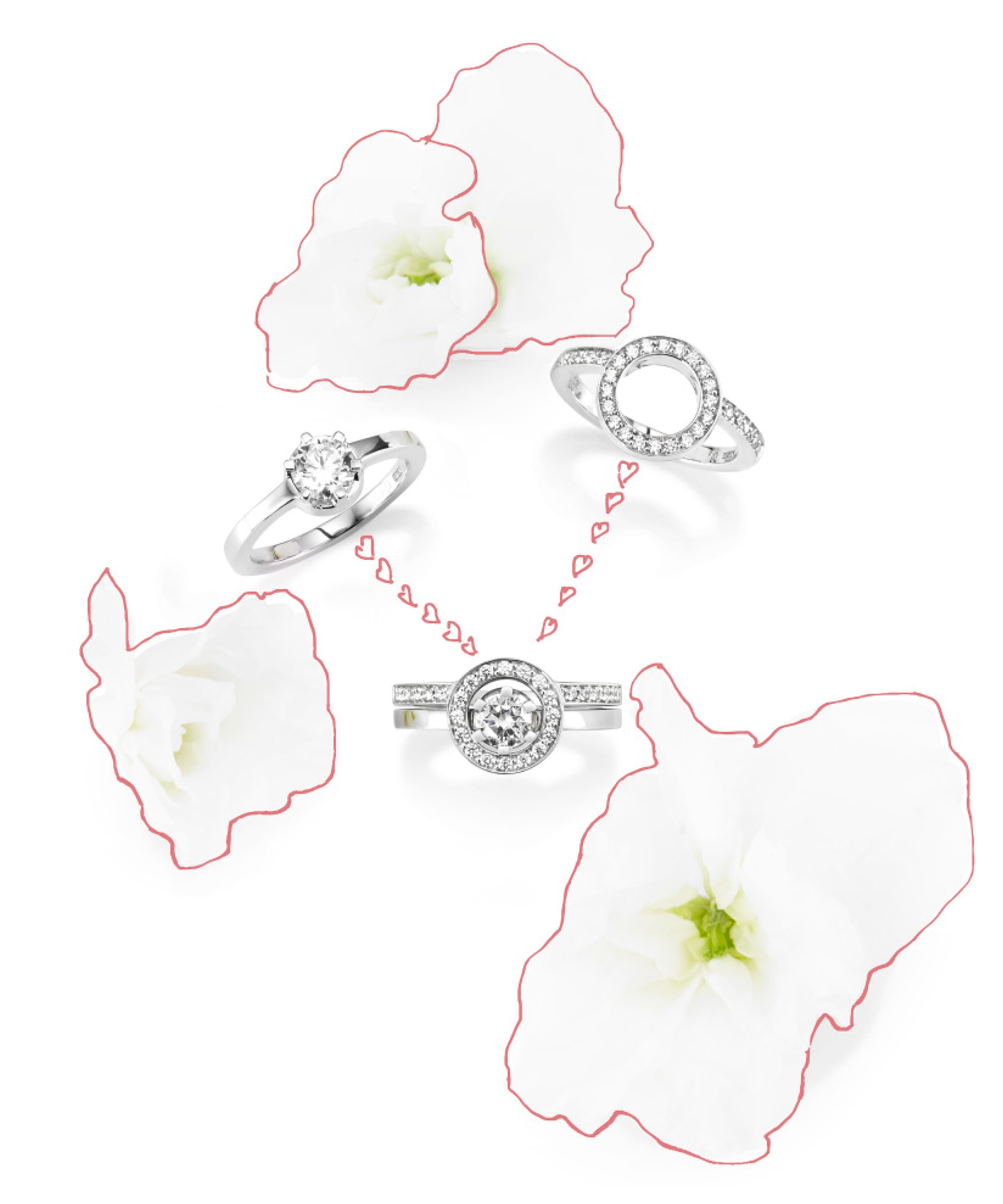 Näin yhdistätte kihlasormuksenne – samanlaiset, mutta erilaiset. Sormukset yhdisteltäväksi omalla tavallanne.