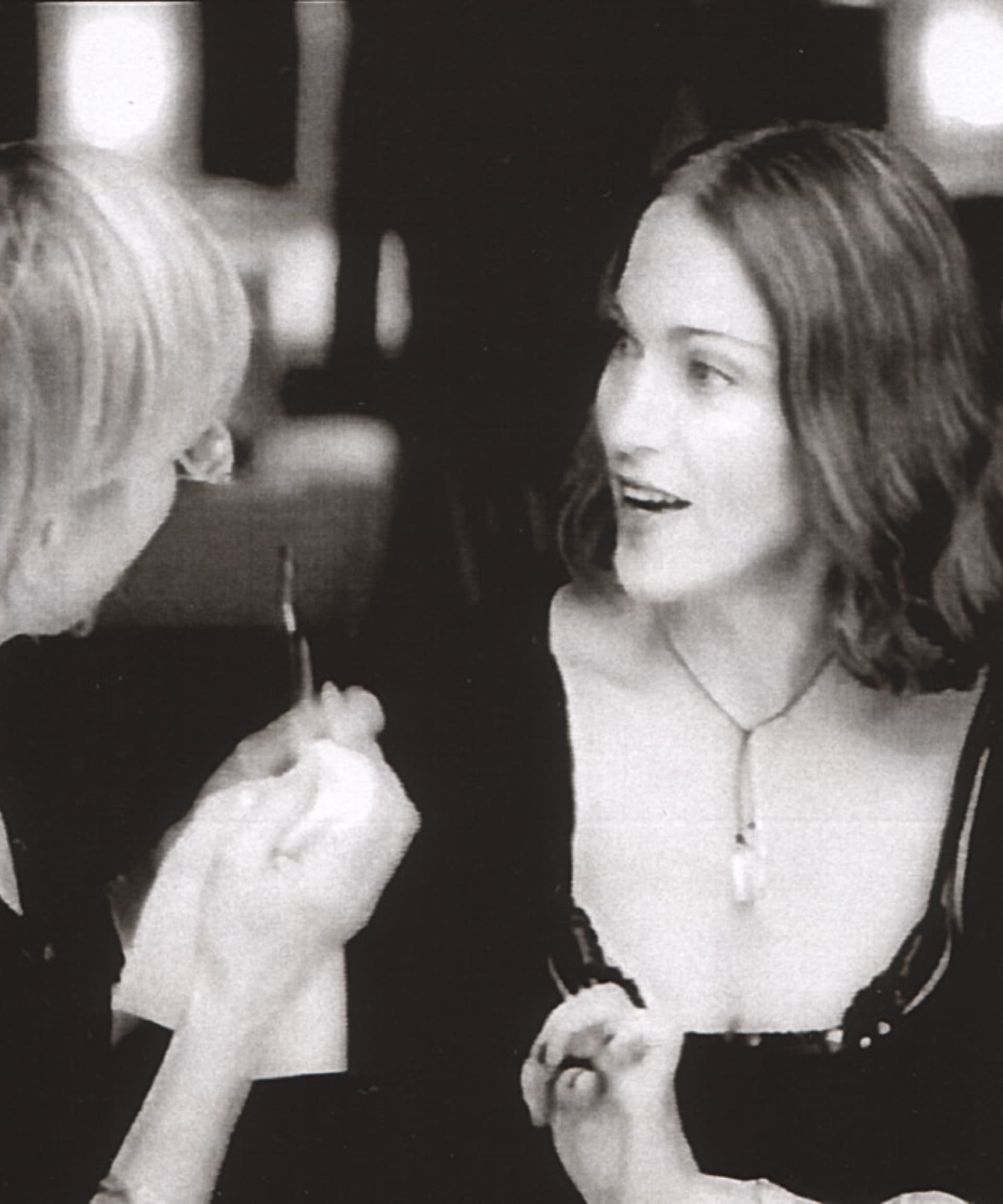 ”Några månader senare ringde Johan och berättade att hon gillade mina smycken och att hon använt dem på någon fotografering. Jag blev ju glad såklart. Den sommaren står jag i köket på vårt landställe och bläddrar i den amerikanska modetidningen ”W”, och vem sitter i knät på en ung snygg skådespelare om inte Madonna med mitt Homo Sapiens runt halsen. Jag ser att halsbandet hänger lite löst och att hon bara har knutit det med en knut, aj aj aj. I texten stod det att Madonna hade dansat hela kvällen.”