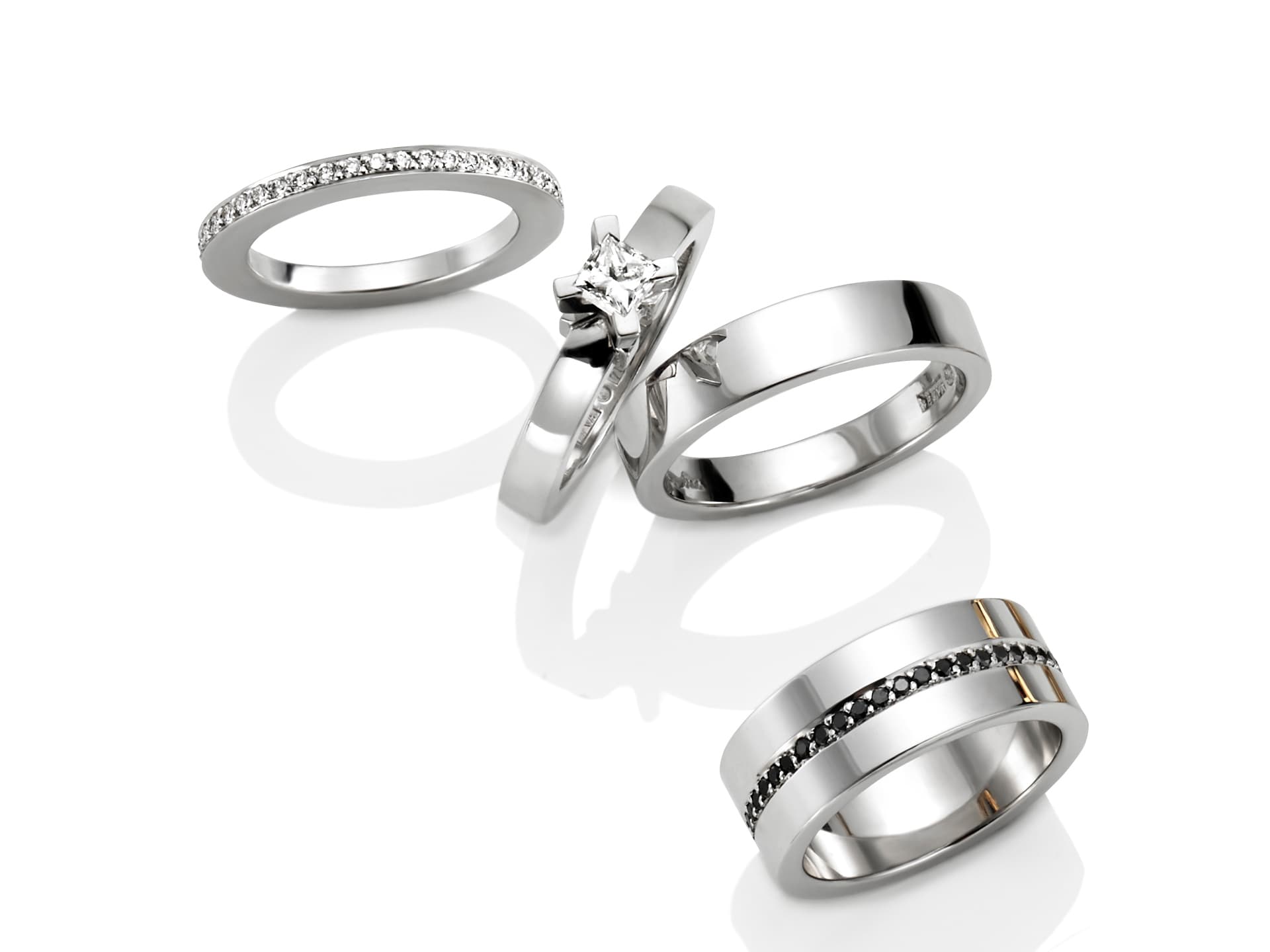 På Efva Attling Stockholm har vi smycken i olika ädla metaller, där röd- och vitguld är de mest tåliga varianterna, vilket gör dem mer exklusiva och lämpliga för smycken som till exempel weddingringar som man bär varje dag. Vitguld har länge varit den populäraste metallen när det kommer till vigsel- och förlovningsringar, det är också ett mer prisvärt alternativ till platina.
