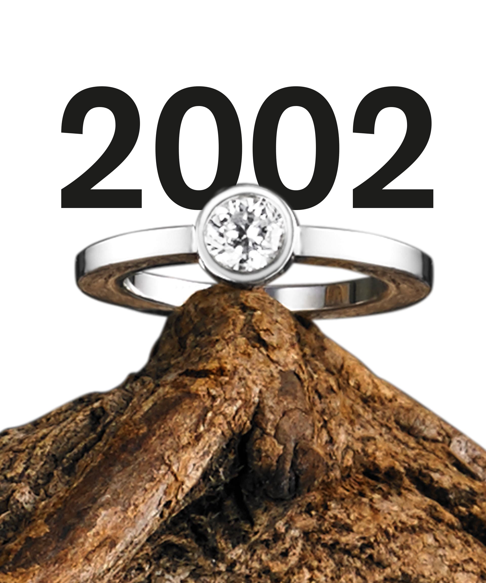 "En av de första beställningarna som jag fick skulle bli en 1 carat vigselring i vitt guld. Jag döpte den till The Wedding Ring och diamanten hade en slät fattning. Jag kallar den ”strumpvänlig”, inga klor som fastnar i något. Skenan är 3 mm och kantig och man kan se diamantens spets från sidan. Något år senare gjorde jag samma ring till mig själv, som en klapp på axeln att jag jobbat så hårt.”