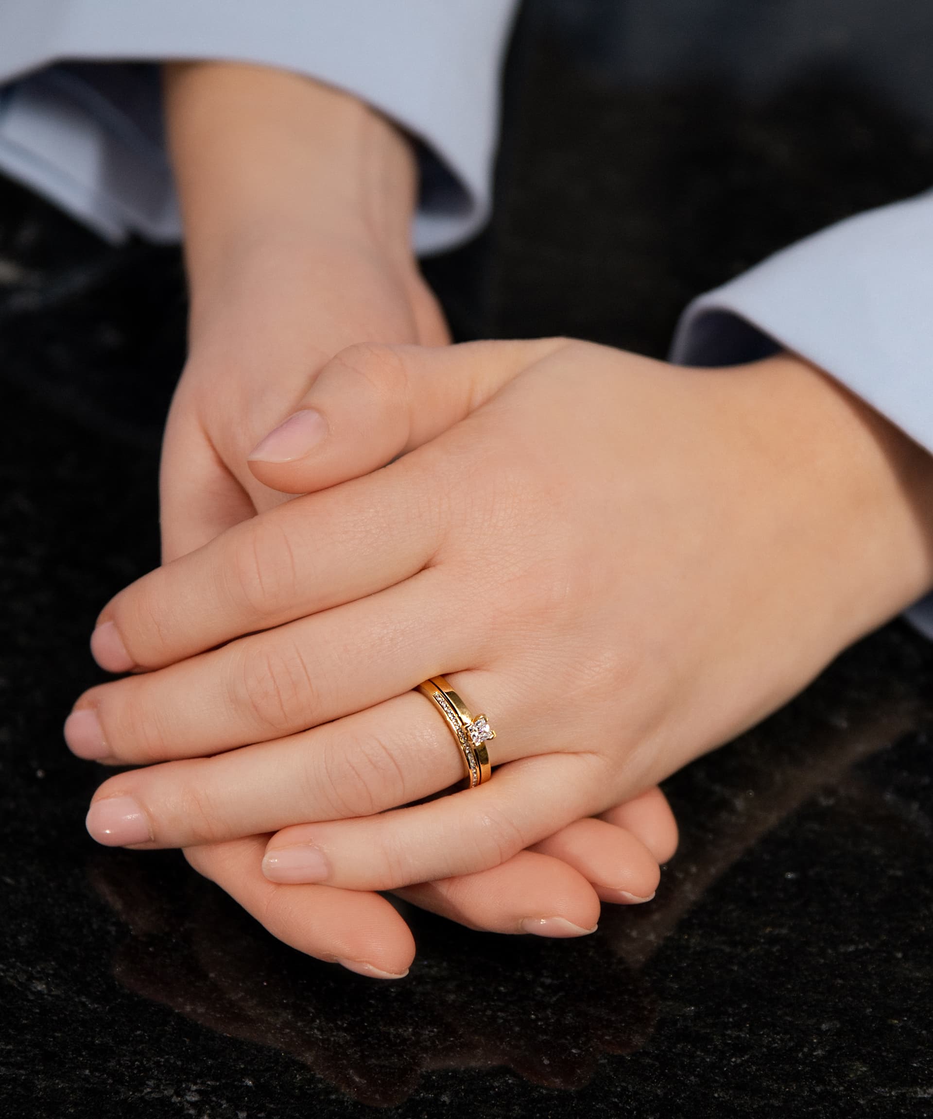 Varför bara bära två weddingringar när världen är fylld av härliga alternativ? Addera ringen ”You & me too ring” som vackert följer formen av ringen ”Wedding & stars” och du har en oslagbar trio att leva happily ever after med.