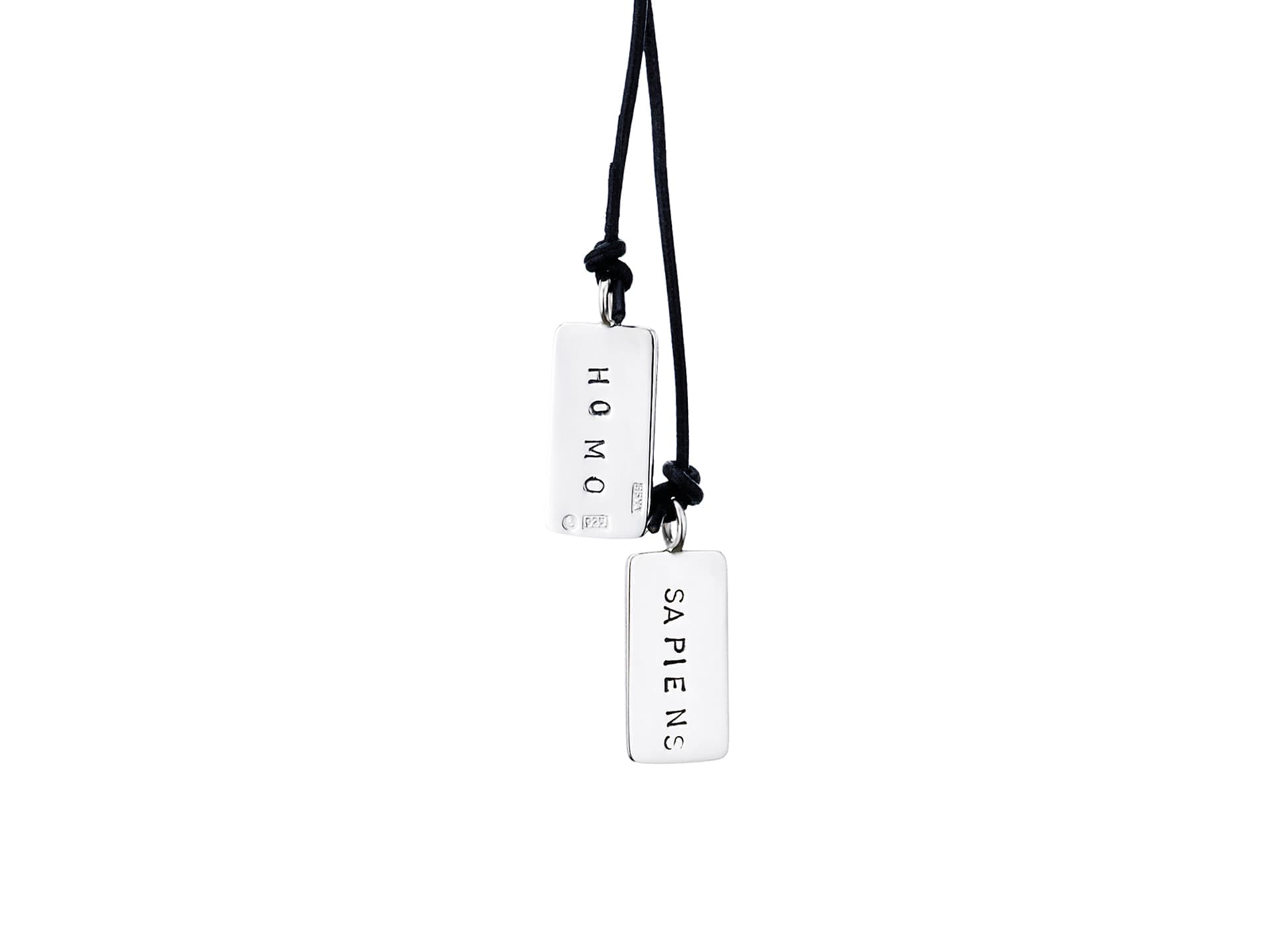 A piece of jewellery can hardly change the world. But a piece of jewellery can touch, inspire, and initiate thoughts that can lead to change. One of the first pieces of jewellery designed by Efva Attling was “Homo Sapiens Necklace”. It is designed with two silver tags and a play with the Latin word for the knowing man. “I divided the words and put each half on both sides of the dog tag”, says Efva. “What I want to say is that all human beings are equal.”
